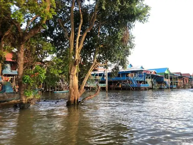 チョンクニアに水上お寺が一軒、学校が一か所、クメール人の水上レストランが3か所ある。