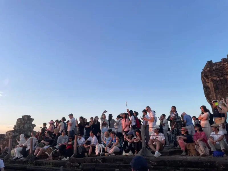 アンコールワット第三回廊から降りたり上がったりしている観光客