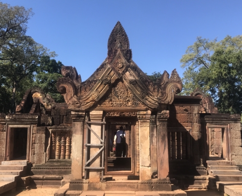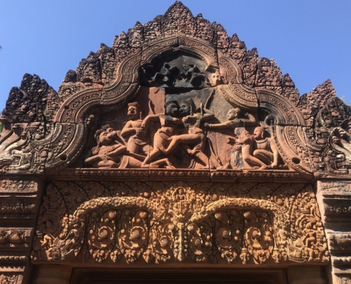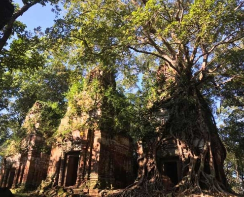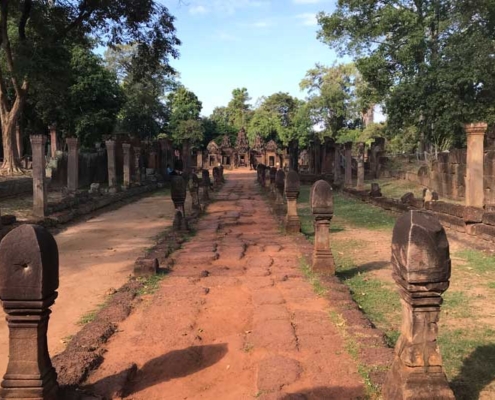 「東洋のモナリザ」と称される美しいデバター像と、壁一面に繊細な浮き彫りが施された芸術的な装飾で知られるバンテアイ・スレイを訪れます。その後、車内で休憩をとりながら、まるで『天空の城ラピュタ』の世界を彷彿とさせる神秘的なベン・メリア遺跡へ向かいます。昼食をはさんで、クメール様式の7段のピラミッド型が印象的なコーケー遺跡を巡り、1日たっぷりとアンコール周辺の秘境遺跡群をお楽しみいただきます。